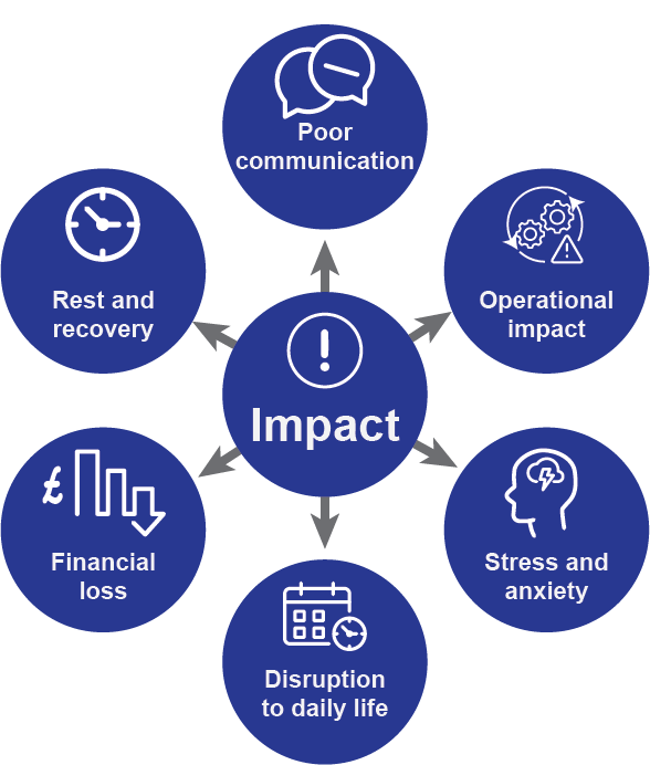 “Increased stress due to insufficient rests between shifts. Cancelled dental or medical appointments (including counselling). Missed family events, stress due to very late countermands when a holiday has been booked and paid for months in advance, and I have had to make phone calls to receive updates.”