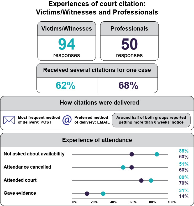 - The results of the surveys showed that the current citation process is a largely negative experience for victims and all categories of witnesses, with a variety of adverse impacts both for witnesses and across the wider policing and justice systems.